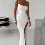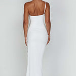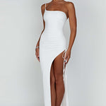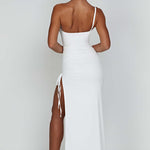 Deixe sua confiança brilhar no vestido maxi Zuri, um design ajustado que abraça a figura como uma segunda pele. Com uma alça no ombro e detalhes franzidos que valorizam a silhueta, o vestido é complementado com um laço na lateral e uma fenda alta na coxa para exibir suas pernas. Estilize o seu com óculos de sol descolados, saltos tonais e um coque elegante.