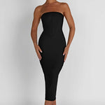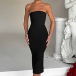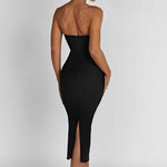 Preencha seu guarda-roupa com peças clássicas e femininas que você vai querer usar em todas as ocasiões. O sexy e feminino vestido midi Amore é feito em nosso bengaline stretch grosso que destaca sua silhueta, proporcionando o contorno dos sonhos. Este design sem alças apresenta um corpete estruturado e uma saia midi simples que se ajusta ao corpo, ficando linda quando combinada com saltos mule e cabelo liso.
