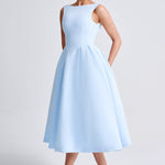 Clarabella é uma adição chique e atemporal ao seu guarda-roupa. Confeccionado em nosso luxuoso tecido crepe com um decote barco alto e largo e costas com decote em U, apresenta detalhes de costura no corpo para uma forma contornada. O vestido se ajusta na cintura para a silhueta dos sonhos, contrastando com uma saia cheia feita de tule para volume extra. Use com ondas suaves e mules de salto neutras para um acabamento chique.