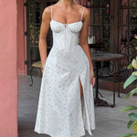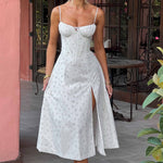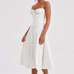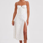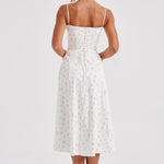 O vestido Deanna dos sonhos é ultra feminino, feito em nosso tecido premium de mistura de algodão que é tão agradável quanto bonito. Com um corpete ajustado para marcar a cintura, o busto é franzido com um cordão para um acabamento super bonito. A saia midi é completa com uma fenda alta na coxa para um toque de sensualidade. Estilize com um nó despretensioso e mules de salto.
