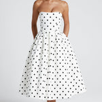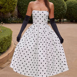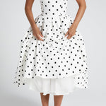 O Vestido Midi Edith em Poá é um clássico atemporal que exala charme inspirado no vintage com um toque moderno. Feito de tecido bengaline com elasticidade, este vestido oferece um caimento lisonjeiro que se move com você. O decote strapless e o corpete com estrutura proporcionam suporte e acentuam a silhueta, enquanto a saia cheia com pregas box invertidas na cintura adiciona um toque de sofisticação brincalhona.