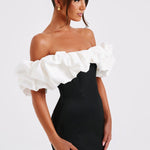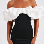 Allie é o nosso vestido dos sonhos, confeccionado em tecido tecido não stretch com um detalhe de babado super exagerado no decote bardot. Romântico e dramático ao mesmo tempo, este design é completo com costuras que contornam o corpo para um ajuste perfeitamente ajustado.
