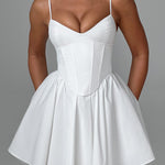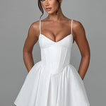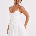 Analeigh é facilmente vestida para cima ou para baixo, confeccionada em uma leve mistura de algodão com corpete com estrutura e decote coração. Com um fechamento nas costas para um cintura super ajustada, a saia é cheia e as alças são ajustáveis para um ajuste perfeito.