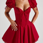 Chame a atenção com o flertante e romântico Vestido Mini Annie. Este vestido de verão é todo sobre detalhes delicados, desde a renda ao redor do decote até os detalhes de pregas no corpete e busto. Laços delicados adicionam um charme brincalhão à parte inferior do busto e às mangas bufantes, enquanto as costas com amarração e o corpete em formato de V criam uma silhueta lisonjeira. É perfeito para piqueniques ensolarados, encontros de brunch e muito mais. A saia cheia, completa com uma barra de renda que revela um pouco, adiciona um toque de drama. Combine-o com sandálias de tiras e uma bolsa de palha para um look diurno chique ou vista-o com saltos para uma noite sedutora.