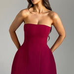 Simples e seriamente chique, o vestido mini Asha é a obsessão desta temporada. Perfeito para usar em noites de encontro, festas e além, este design sem alças é finalizado com detalhes de costura e uma saia em formato de bolha para um volume extra.