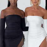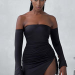 Leve as coisas para o próximo nível com peças femininas e descoladas que você usará repetidamente. O vestido mini Becca é feito em nosso jersey de dupla camada característico que se ajusta à silhueta, apresentando detalhes franzidos, estilo off the shoulder, mangas longas e detalhes de laço. Mantenha tudo super elegante e simples com mules tonais e joias minimalistas.