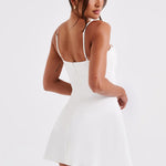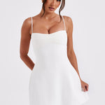 Mantenha-se divertida e sedutora com o vestido Dakota, o mini favorito de todos nesta temporada. Feito em nosso leve crepe stretch, este design ajustado ao corpo marca a cintura e se abre em uma saia em formato A. A gola tem um leve formato coração com detalhes de costura, enquanto as alças são ajustáveis para um ajuste perfeito.