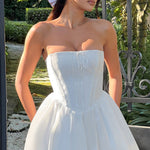 Se apaixone pelo vestido Evie, um mini flertante com uma saia super cheia feita de tule para um volume extra. Este estilo sem alças possui um corpete com estrutura para um visual ainda mais ajustado, completo com fita no busto e costas com amarração. Combine com ondas soltas, saltos pontudos e joias metálicas.