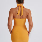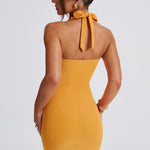 Fallon é o mini vestido que está na mente de todos. Com um ajuste super escultural e justo ao corpo, este design é feito de nossa malha dupla premium com um decote em V profundo e laço nas costas do pescoço. É completado com copas com estrutura para maior suporte e detalhe de sobreposição. Combine com sandálias de salto mule brancas e uma mini bolsa.