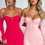 Super flirty e feminino, Fiona será seu novo mini favorito do momento. Com mangas longas que se alargam suavemente no punho, o vestido é feito de luxuoso cetim georgette que se adapta ao corpo, proporcionando uma sensação romântica e fluida. Completo com um busto plissado com aro e um detalhe de amarração nas costas, estilize o seu com ondas glamourosas e lábios brilhantes.