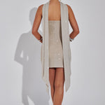 Um mini brilhante feito para a temporada de festas, diga olá para Ginni. Este estilo sem alças apresenta um acabamento com strass brilhantes em toda a peça, para que você brilhe a noite toda. Com um ajuste que abraça o corpo, combine com o lenço Ginni para sua próxima reserva de jantar.