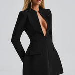 Sinta-se luxuosa com Greta, um design premium de crepe feito com mangas longas e com fenda, decote profundo e detalhes de bolsos com aba. O ideal é usá-la com cabelo liso e acessórios mínimos, finalizada com uma saia arredondada e em formato de bolha.