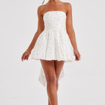 O vestido da temporada chegou e você vai ficar obcecada. Conheça Katrina, nosso mini dos sonhos com uma saia volumosa e um corpete que afunila a cintura. Com fechamento em zíper nas costas, um laço oversized completa o visual para um drama feminino perfeito.