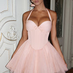 Chame a atenção com o Vestido Mini Keely em Pêssego Suave - uma mistura dos sonhos de elegância e charme. Projetado com um decote coração com aro e copas plissadas, oferece o levantamento e a forma perfeitos. As alças de pescoço halter se amarram graciosamente nas costas, enquanto as costas com amarração ajustam sua cintura para um caimento impecável. Finalizado com uma saia de tule, Keely entrega uma vibe de conto de fadas com um toque flirt.