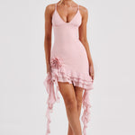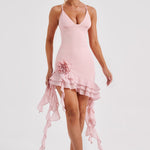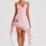 Não fica muito mais chique do que Lillabelle, cortado em nosso tecido de malha dupla premium que se ajusta por dentro e abraça o corpo como uma luva. Com um decote profundo e uma barra assimétrica flertante com camadas de babados em cascata, o mini é completado com detalhes de corsage de flores brincalhonas.