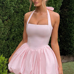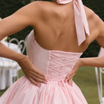 Mostre seu lado brincalhão com o Vestido Mini Maricia na cor Blush! Este vestido totalmente forrado apresenta um decote halter quadrado único e uma saia puffball divertida. As costuras princesa criam uma silhueta lisonjeira, enquanto as costas com amarração em renda adicionam um toque de charme inesperado.