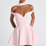 O Vestido Mini Marla na cor Blush é um design feminino e divertido que combina charme clássico com um toque contemporâneo. Feito de crepe não stretch, este vestido apresenta um decote profundo e bardot, além de uma alça traseira elástica para um ajuste seguro e confortável. Painéis de godê franzidos nos quadris criam uma silhueta suave e estruturada, enquanto o tule na saia adiciona um toque extra de volume para um efeito sonhador e cheio.