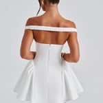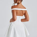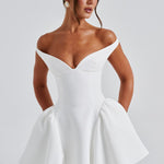 Um estilo deslumbrante para fazer uma entrada, conheça Marla. Com um decote profundo estilo bardot e alça nas costas elástica, a saia é feita de tule e detalhes franzidos para um visual super volumoso e divertido.