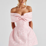 Chame a atenção com o encantador Vestido Mini Raquel, confeccionado em tecido jacquard floral sem elasticidade para uma sensação luxuosa e feminina. O decote oversized com laço bardot exala elegância, enquanto as costas com amarração e a saia tulipa em painéis com quadris plissados criam uma silhueta esculpida e lisonjeira. Perfeito para festas de coquetel, casamentos ou noites de encontro, este deslumbrante vestido mini combina perfeitamente com saltos finos e uma clutch statement para um look sofisticado.