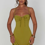 Estamos obcecadas pelo vestido Renee, um mini elevado feito em nosso luxuoso cetim sem elasticidade e delicado chiffon. Com alças de pescoço halter e um bonito busto franzido com copas com aro, o design se ajusta na cintura e se abre suavemente na barra.