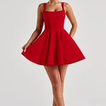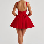 Entregue-se ao luxo com o Vestido Mini Rue em Vermelho. Com um comprimento mini e design totalmente forrado, este vestido inclui aros no corpete para um ajuste perfeito. O decote quadrado e as alças ajustáveis em forma de leque adicionam um toque de sofisticação, enquanto o laço removível com longas fitas traz um elemento lúdico. A saia cheia, completa com tule para volume extra, é fixada com zíper invisível e fechamento de gancho e olho. Eleve seu guarda-roupa com esta peça exclusiva.