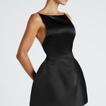 O Vestido Mini Tate é o novo Pequeno Vestido Preto que todo guarda-roupa precisa. Feito de cetim estruturado e sem elasticidade, este vestido apresenta uma saia em formato de bolha que adiciona um toque lúdico e volumoso. Seu decote barco alto e largo exala elegância, enquanto as costas com decote baixo proporcionam um contraste sedutor. Seja dançando a noite toda ou participando de um evento sofisticado, este vestido garantirá que todos os olhares estejam voltados para você.
