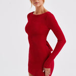 Diga olá para o mini do momento, Una. Confeccionado em nosso tecido de alto brilho que se ajusta ao corpo como uma segunda pele, este design de manga longa é completo com um decote alto e costas com caimento baixo, apresentando detalhes de laço cruzado.